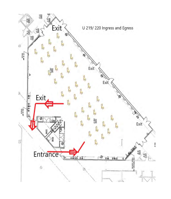 - Exiting will be guided through the Main entrance to the building and from the House Right doors leading into the adjacent parking lot.